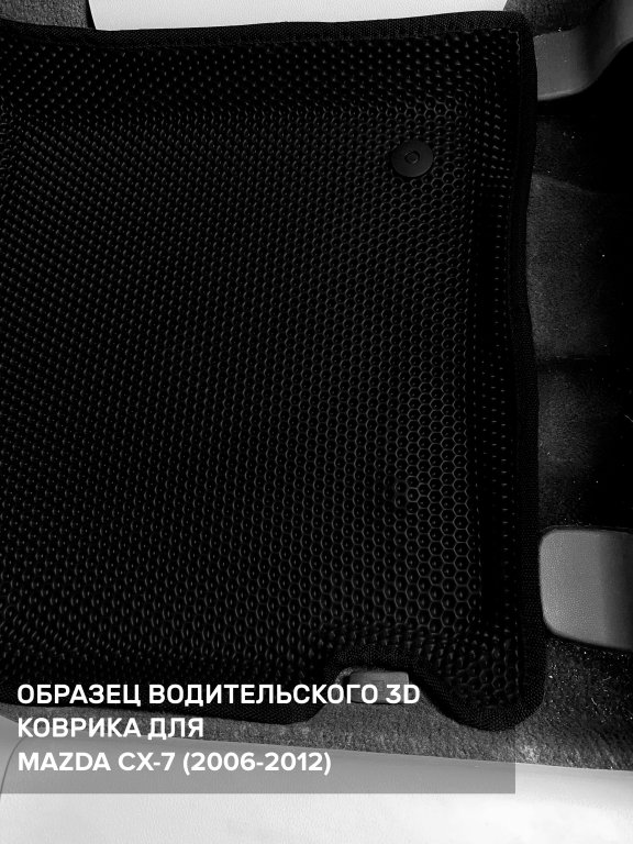 Автомобильные 3д коврики для Mazda CX-7 (2006-2012) в салон авто и багажник сделаны из инновационного полимерного материала EVA, изысканная структура в виде ячеек не дает воде, пыли и снегу разлетаться по салону машины и багажнику. 3д коврики зафиксированы на полу определенными клипсами, соответствующими Mazda CX-7 (2006-2012), и не двигаются в процессе езды.